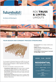 The Futurebuild LVL Residential Design Service (RDS) Truss & Lintel Layouts service was developed to provide Architects with Buildable Consent Layouts for both trusses and lintels through one dedicated service, saving you time and effort.